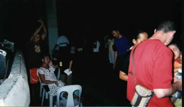 ![]() The team at work praying for the people. Notice people in background working out their faith in being healed. |