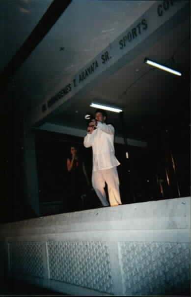 ![]() Team USA leader Rod Arnold preaches the "Good News" to a local group at the Crusade. |