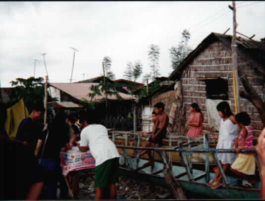 ![]() Preparing to minister to a group of children in a local fishing village. |